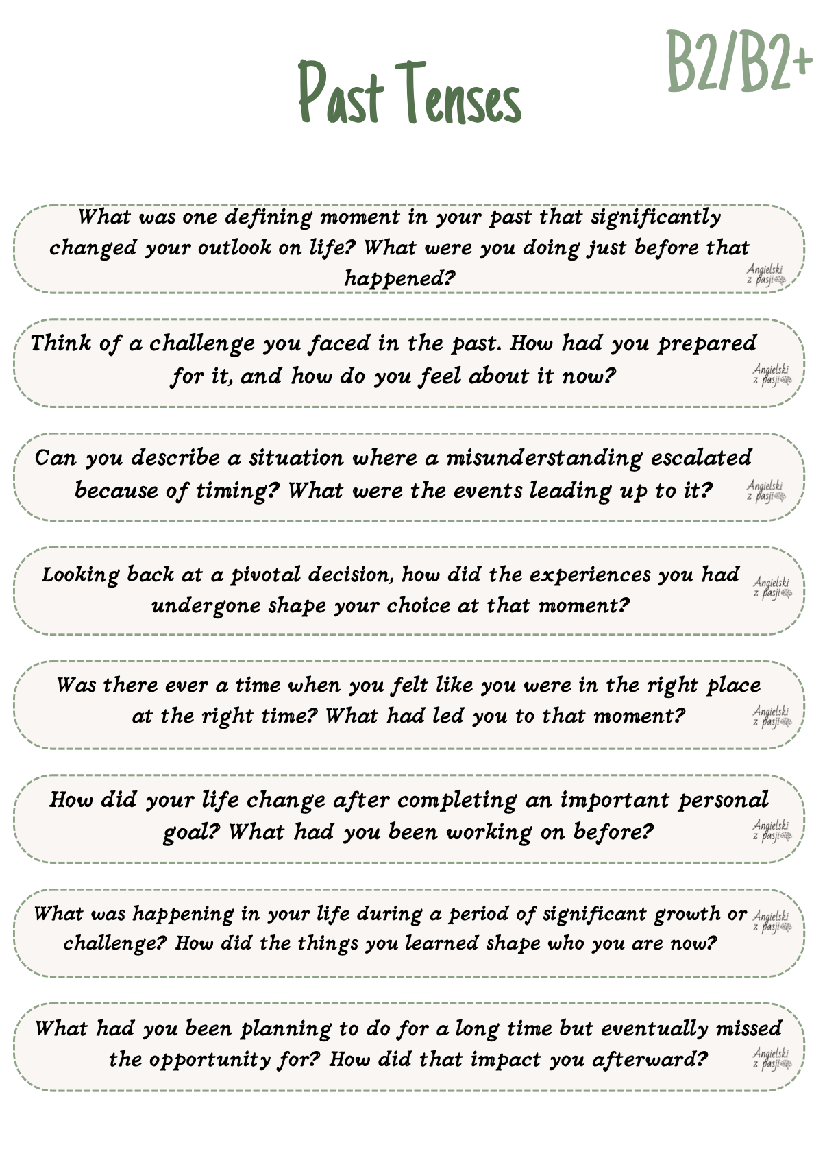 Spędzasz godziny na poszukiwaniu kompleksowych zadań gramatycznych dla zaawansowanych uczniów lub maturzystów? Ciągle szukasz czegoś nowego na łączone czasy? Mam dla Ciebie materiał, który zapewnia pracę z czasami oraz konstrukcjami gramatycznymi w zadaniach oraz rozmowie!
